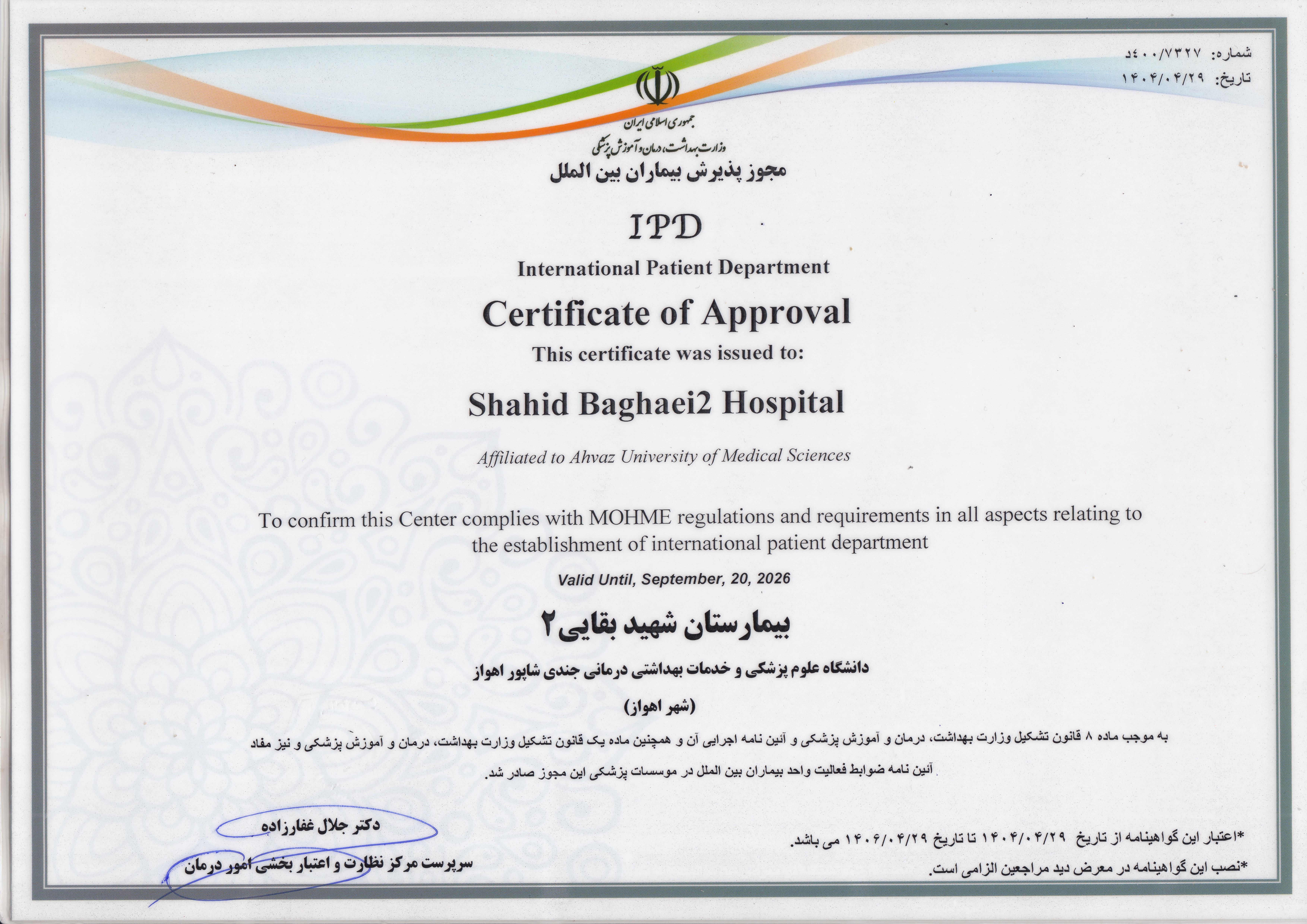 آدرس: اهواز - انتهای اتوبان گلستان- میدان شهید بقایی - بیمارستان شهید بقایی 2
